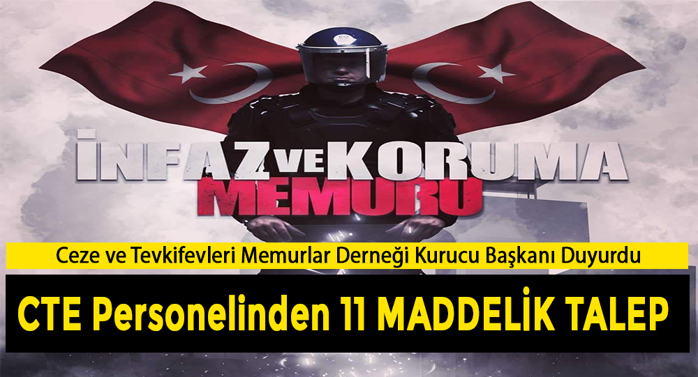 Ceza ve Tevkifevleri Memurları Derneği (CTEM-DER) Kurucu Başkanı Mustafa Balık, dernek yönetimi, üyeler ve diğer teşkilat çalışanları tarafından Dernek Başkanlığımıza ulaşan talep ve istekler doğrultusunda başta Cumhurbaşkanlığı olmak üzere TBMM, Bakanlıklar, Siyasi Partiler, Kamuoyu, Basın ve Tv kuruluşlarına sunulmak üzere onbir (11) başlık altında bir rapor hazırladığını açıkladı.