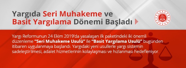 Geçtiğimiz günlerde Yargı Reformu’nda “Seri Muhakeme Usulü” ile “Basit Yargılama Usulü” Döneminin başladığını duyurmuştuk. İlgili habere buraya tıklayarak ulaşabilirsiniz. Yargı Sistemine fark katan Seri Muhakeme Usul Yönetmeliği 31.12.2019 tarihinde yayınlanarak 01.01.2020 tarihinden itibaren yürürlüğe girmiştir.